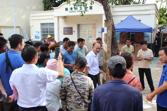 邢壯福在樂(lè)東縣陳考村委會(huì)為膠農(nóng)講解割技術(shù)要領(lǐng)。