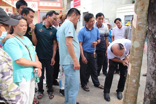在木樁實(shí)練中,邢壯福向膠農(nóng)講述了橡膠樹種植管理、開線、如何下刀、收刀、撐刀手法、腳步等各個(gè)環(huán)節(jié)的技術(shù)要求,邊講解邊示范操作。膠農(nóng)們聽得很認(rèn)真,學(xué)習(xí)積極性非常高,爭(zhēng)相現(xiàn)場(chǎng)實(shí)踐,邢壯福不厭其煩地幫助他們糾正不規(guī)范動(dòng)作。