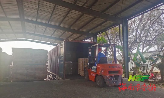 海南橡膠“零添加”FSC橡膠木刨光鋸材裝車發(fā)運(yùn)