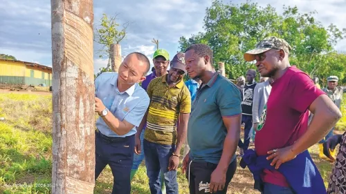 11月24日,瓊中黎族苗族自治縣黎母山鎮(zhèn),海南天然橡膠產(chǎn)業(yè)集團股份有限公司(以下簡稱海南橡膠)陽江分公司組織人員開展橡膠冬春管理工作。